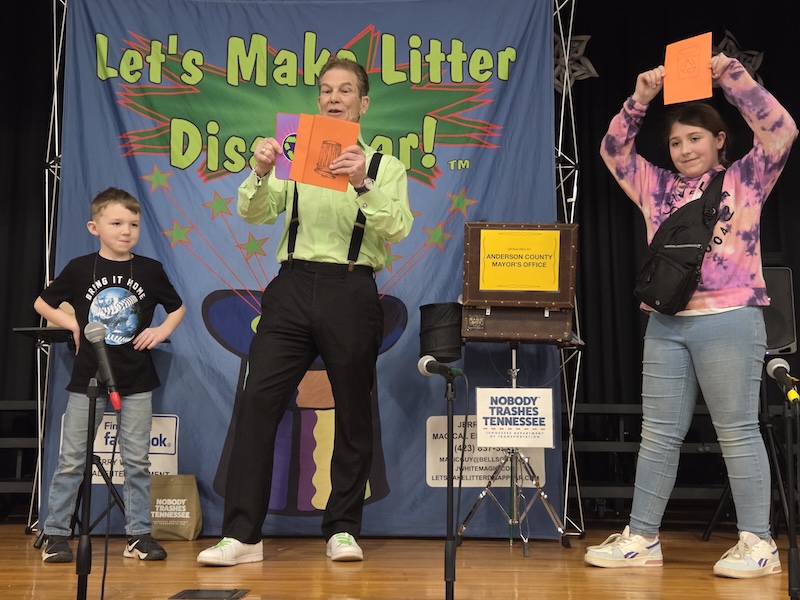 K-2nd grades + Dr. Lori Price's 4th grade recycle crews were treated to an anti-litter magic show by the Anderson County Mayor. Magician Jerry White made litter disappear. Date Thu, 01/22/2026 - 09:00 Locate 36.220106961631, -84.1519291